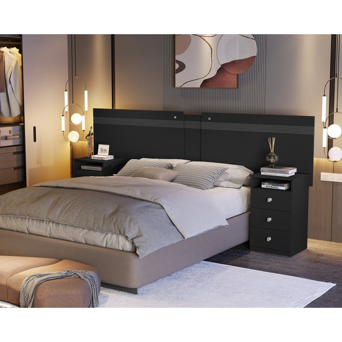 Itens inclusos: 1 cabeceira , 2 mesas com 2 nichos