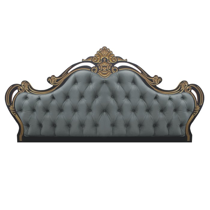 Cabeceira Painel Charlotte 1,60 m Preto Entalhe Dourado Capitonê Veludo Cinza