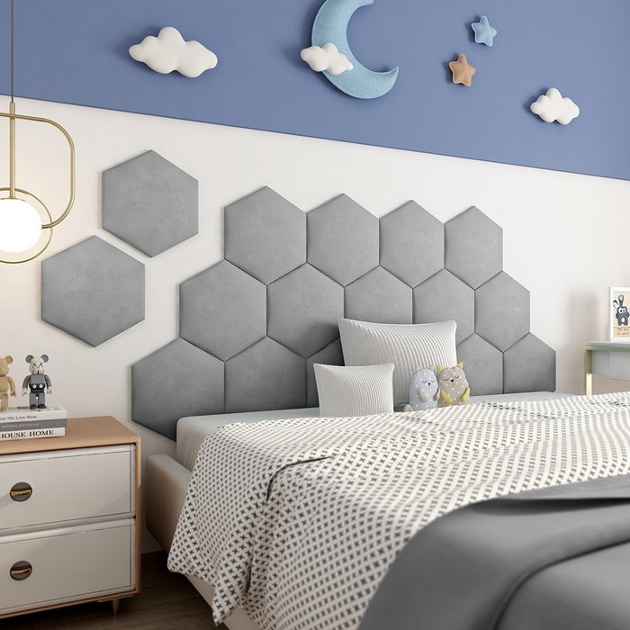 Cabeceira Painel Hexagonal Casal 140cm Cinza - AZ Decor