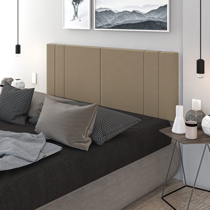 Cabeceira Para Cama Casal Tulipa 1,40 Estofada Suede Bege - Rede Móveis Bege