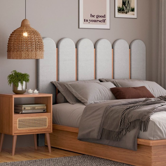 Cabeceira Queen Espuma D20 Linho 130x165cm Nature Dalla Costa Freijó/Madeirado