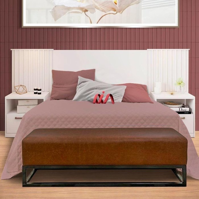 Cabeceira Ripada Branca com Mesa de Cabeceira