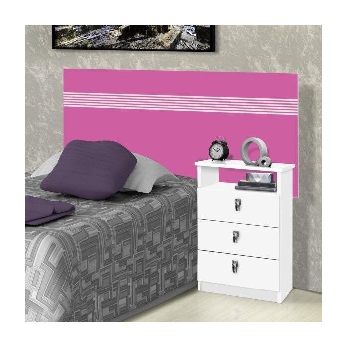 Cabeceira Solteiro com Mesa de Apoio Agata Cambel Móveis Branco/Rosa