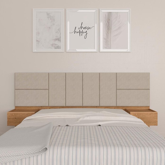 Cabeceira Suspensa para Cama Casal Malibu - M. Arapongas Carvalho/Bege