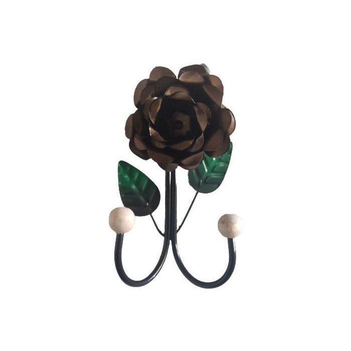 Cabide 2 Ganchos Rosas de Ferro - Suporte Duplo:marrom Marrom