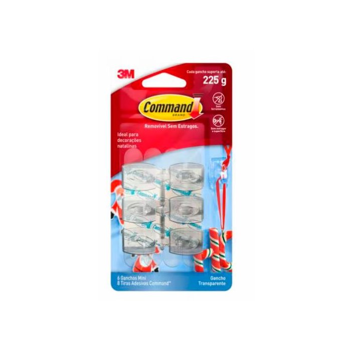 Cabide Adesivo Mini Ganchos Command 3m Transparente 6 Unid