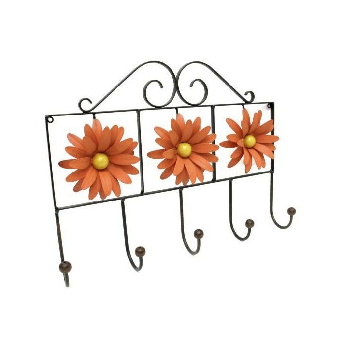 Cabide com Flor Artesanal Rústico Decorativo de Ferro para Quarto de Parede Libertas Rosas Artesanat Laranja