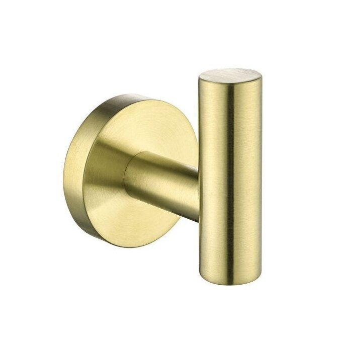 O Cabide com Gancho Inox Tarsila Dourado é um modelo elegante, com acabamento escovado na cor dourada, e foi projetado para pendurar toalhas, roupões ou toucas de banho. Produzido em aço inoxidável de alta qualidade, é perfeito para dar um toque sutil e sofisticado ao seu banheiro ou lavabo.