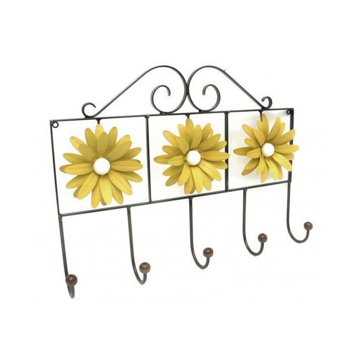 Cabide de Ferro Artesanal para Quarto Pendurador de Bolsa e Roupas com Flor Libertas Rosas Artesanat Amarelo