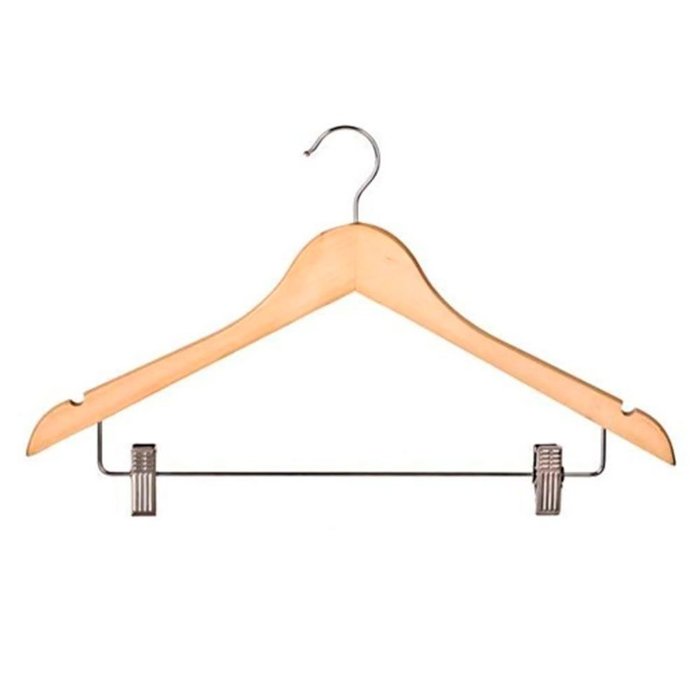 Cabide de Madeira com Presilhas Os cabides são itens essenciais para manter a organização de suas roupas, garantindo maior otimização do espaço e facilitando o momento de encontrar a peça desejada, e ter uma cabide resistente que atende a todas essas necessidades é o ideal! Desenvolvido totalmente em material duradouro, o cabide de madeira com gancho de aço permite que você pendure das mais leves até as mais pesadas peças de roupas, além das presilhas que acompanham o item, permitindo que você pendure calças, bermudas, saias e o que mais quiser. Traz toda a praticidade que você precisa, seja no momento de organizar ou de encontrar alguma peça. Conta com um design moderno deixando seu guarda roupa ainda mais bonito além de organizado, tendo também uma alta qualidade e com o acabamento perfeito que não vai puxar, esticar ou desfiar suas roupas.