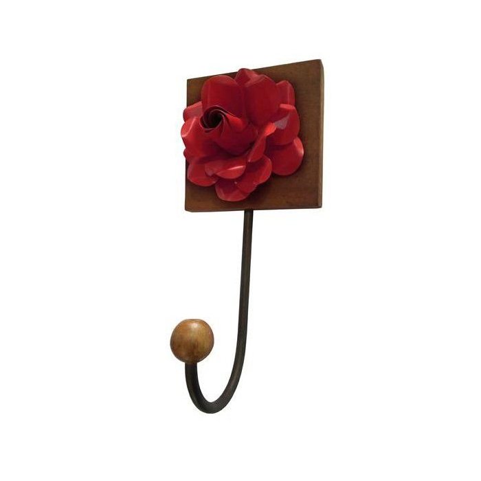 Cabide de Parede para Pano de Prato Artesanal de Ferro Rustico para Cozinha Libertas Rosas Artesanat Vermelho