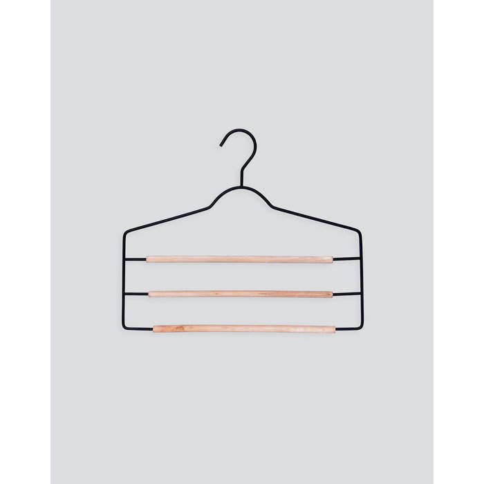 Esse é o cabide de metal triplo com barras de madeira da coleção Ferreiro, da OIKOS. Bacana para organizar calças e saias ocupando menos espaço no armário. Fininho que só ele, deixa seu armário muito mais livre, cabe até na mala de viagem. E não é só de resistência que vive esse cabide: seu design minimalista é bacana para expor em araras, dando um toque a mais na decoração. Aqui, em casa de ferreiro, o espeto é de ferro mesmo - e ferro é tendência.