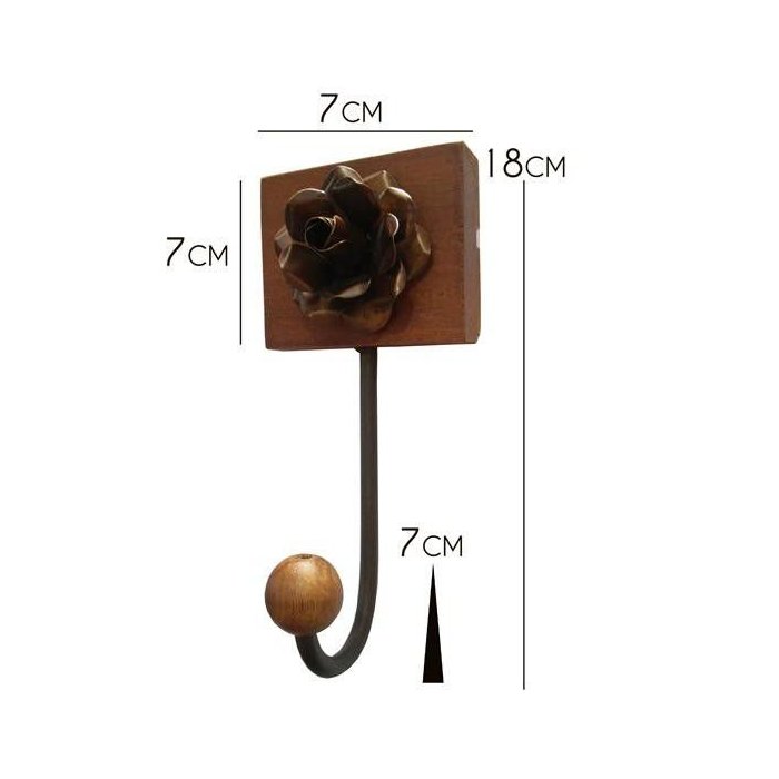 Cabide de Ferro e Madeira Rústico Artesanal com Flor Mini