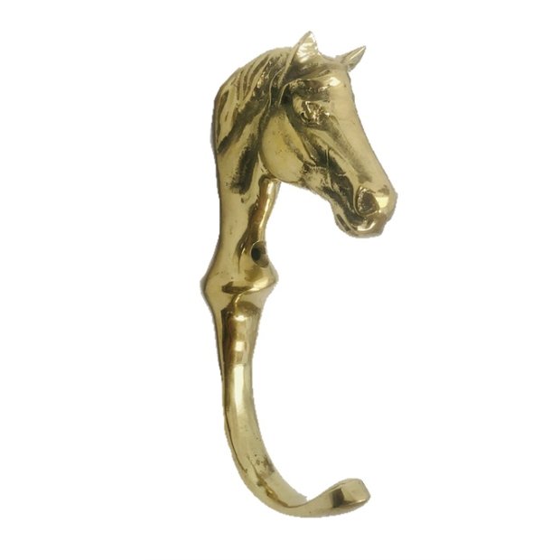 Cabide Pescoço Cavalo em Bronze Pendurador Parede e Porta Dourado