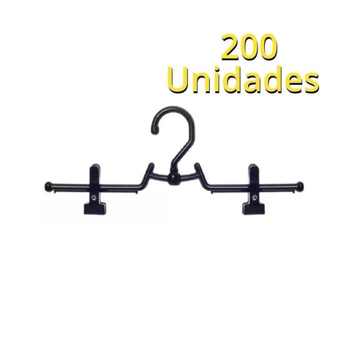 Cabide Plastico Preto Saia Giratório Fino 200 Unidades