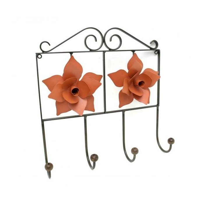 Cabide Porta Tolhas de Ferro Artesanal Rústico com Flores de Lata