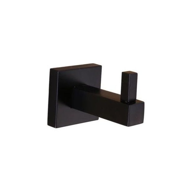 Cabide Quadrado Para Banheiro Dupla Fixação Preto Fosco Black