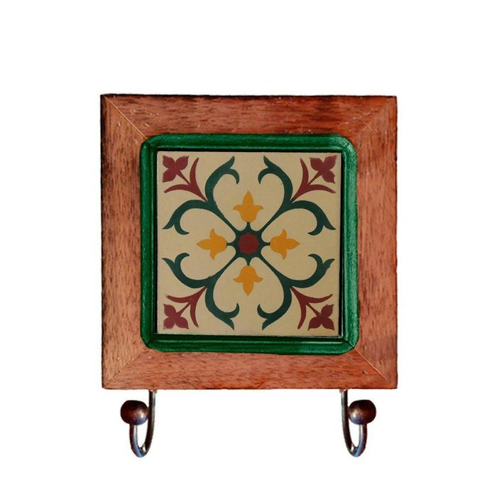 Cabideiro De Madeira Com Ladrilho Hidráulico Porta Chaves Bolsas Ladrilho D1m