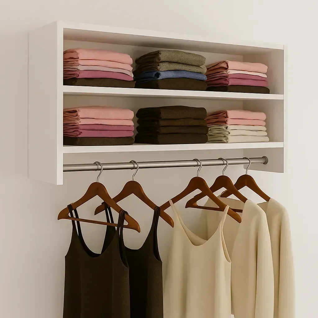 1 Unidade Cabideiro De Parede Arara Em Mdf Com 2 Nichos de 1 Metro;