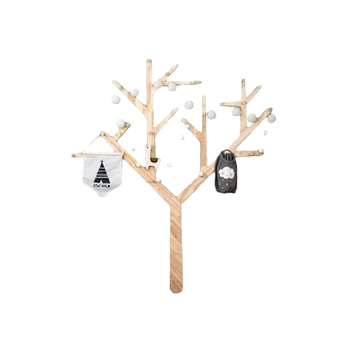 Cabideiro de Parede Árvore Modelo Luxo 130x86cm Com 12 Ganchos Porta Cabides Brinquedos Bolsa Em Mad