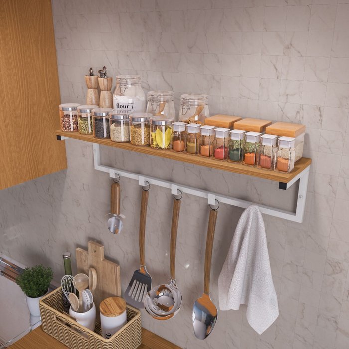 Cabideiro de Parede Kappesberg Estilo Industrial LI042 Canela/Branco