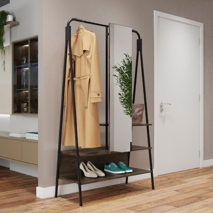 | Nome do Simples no Fornecedor | Cabideiro Hall de Entrada com Espelho Madeirado Tubos Pretos Carraro |