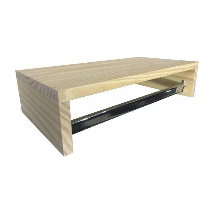 Cabideiro de parede rústico em madeira pinus, utilizamos varão metálico para proporcionar ao ambiente um toque rústico com modernidade.