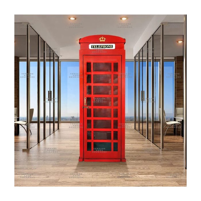As famosas cabines telefônicas vermelhas começaram a tomar as ruas de Londres em 1936, como forma de celebração aos 25 anos de reinado de George 5º. Em 1952, ano em que a rainha Elizabeth assumiu o trono, as cabines passaram a exibir a coroa dourada em seu topo. Com o passar dos tempos e a evolução da telefonia, as cabines britânicas foram perdendo sua importância e aos poucos desocupando as ruas de Londres. Portanto, garanta a sua réplica de cabine telefônica em tamanho real e tenha uma raridade em sua decoração! Com 2,06 metros de altura e 73 centímetros de largura, a cabine tem amplo espaço interno (acomoda até duas pessoas) e é fabricada em MDF de 20 milímetros com pintura artística manual. Detalhes como maçaneta envelhecida, fecho de porta, tapete interior e acabamento em alto relevo da identificação Telephone, a tornam ainda mais realista. Inclui todas as janelas de acrílico nas laterais e da porta. Em ambientes comerciais, a peça é frequentemente utilizada em decorações temáticas de pubs, bares, restaurantes, hamburguerias, barbearias e escolas de inglês. Pode ser utilizada também como uma verdadeira cabine telefônica em recepções de escritórios e agências. No âmbito residencial é perfeita para complementar a decoração de áreas de lazer como salas de jogos, salas de TV, garagem ou man cave.Para facilidade e segurança de nossos clientes, a cabine telefônica não necessita montagem e é enviada pronta para uso. Portanto, recomendamos que confirme as dimensões das portas e passagens pelas quais a peça deve passar até ser posicionada no local desejado.