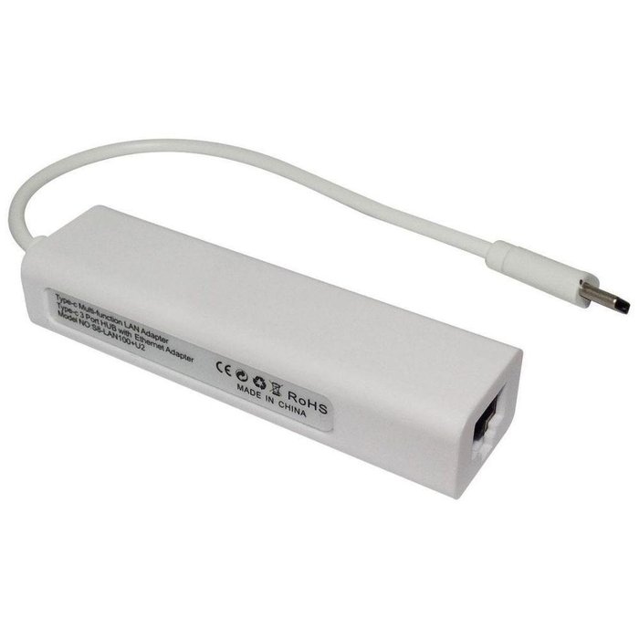 Cabo Adaptador Hub Usb Type C Rj45 3 Portas Branco