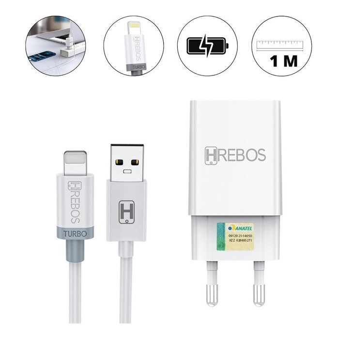 O carregador 3.1A Turbo da HRebos é oque você procura, é um carregador reforçado de excelente qualidade que carregará seu celular rapidamente e o cabo pode ser usado também para a transferência de dados.