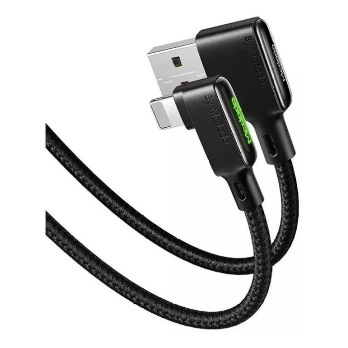 Cabo Carregador Usb Led Lightning 90° Iphone 3a 120cm - Preto Mcdodo Ca-751 Preto