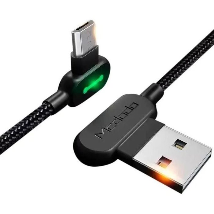 Cabo Carregador Usb Led Micro Usb 90º 2.4a 300cm - Preto Mcdodo