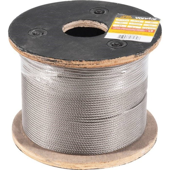 Cabo de Aço Inox, Alma de Aço, 3,18 Mm - 1/8", 6 X 7, Vonder