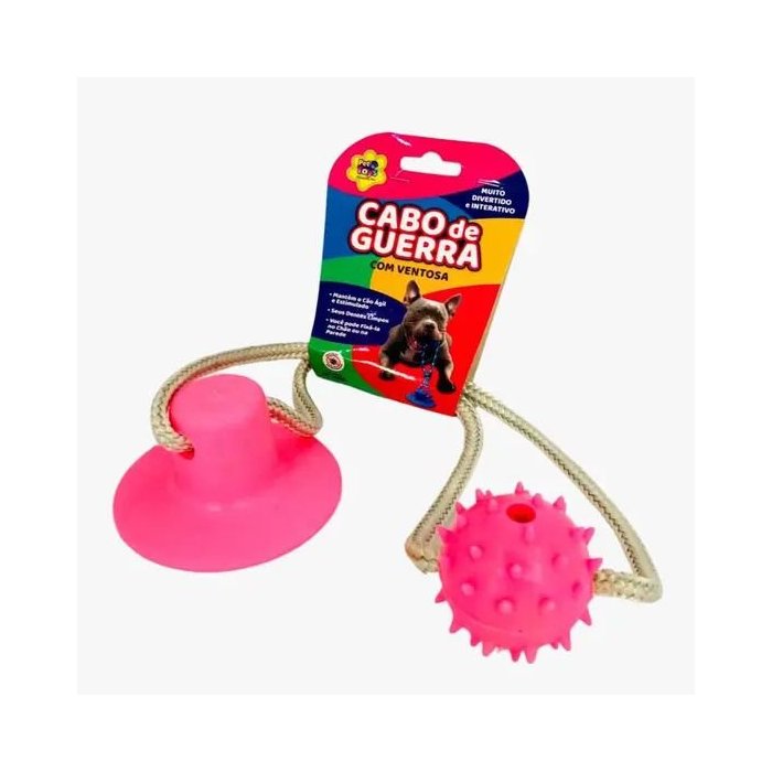 O Brinquedo Cabo de Guerra Com Ventosa é ideal para o pet que fica sozinho em casa e não tem com quem brincar. A ventosa pode ser presa no chão ou na parede e o cachorro pode brincar de cabo de guerra puxando ou mordendo a outra ponta