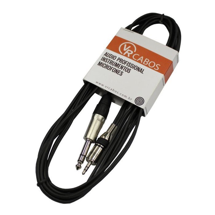 Cabo Emborrachado 3 Metros P2 Macho Estéreo / P10 Macho Estéreo - VR CABOS