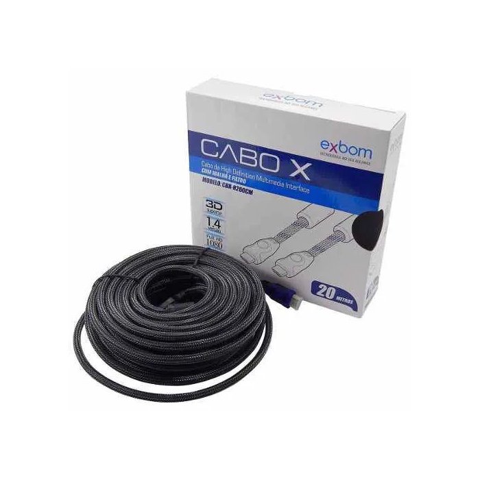 Cabo Hdmi Exbom 20m 1.4 Ethernet 20 Metros Full Hd 3d 1080p