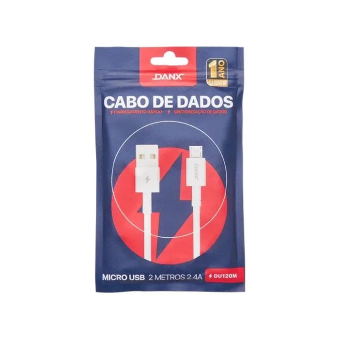 O Cabo Micro Usb 2.4A 2 metros DU120M da Danx é construÃdo em Silicone de alta resistência e oferece a opção de Carregamento e Transferência de Dados em alta velocidade.