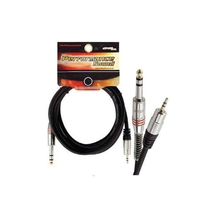 Cabo P10 Stereo x P2 Stereo Profissional Ouro - 2 Metros - Chipsce
