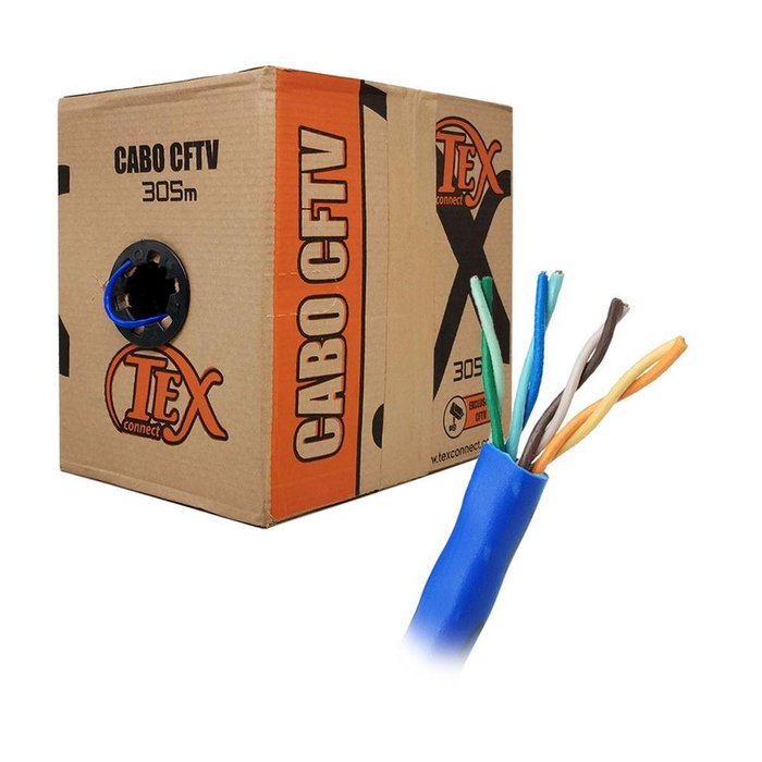Cabo para Cftv Tex Connect, 8 Vias Azul, Caixa com 305m Muca3002