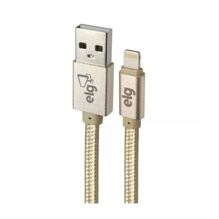 Cabo para iPhone Flat Trançado em Nylon Reforçado 2 metros Dourado L820BG ELG