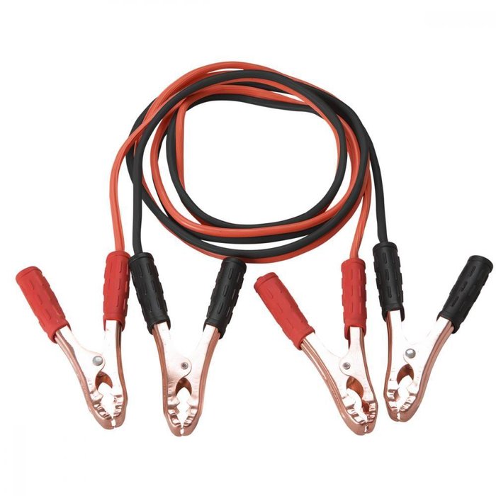 Cor: Única Cabos de cobre de 8 mm de diâmetro revestidos com PVC.Garras tipo jacaré em cobre com empunhaduras revestidas em PVC.Capacidade: 250 A.Comprimento: 2,5 m.Prático e versátil.Garras tipo jacaré para melhor fixação na bateria. Cabos em cores diferentes para melhor visualização e segurança durante a operação. As ferramentas são produzidas e testadas conforme requisitos internos de fabricação esegurança.