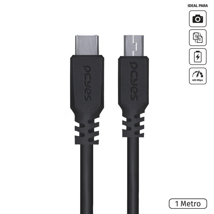 Cabo Usb Tipo C Para Mini Usb B 2.0 Para Type C Tipo C 1 Metro Preto - Pucmbp-1