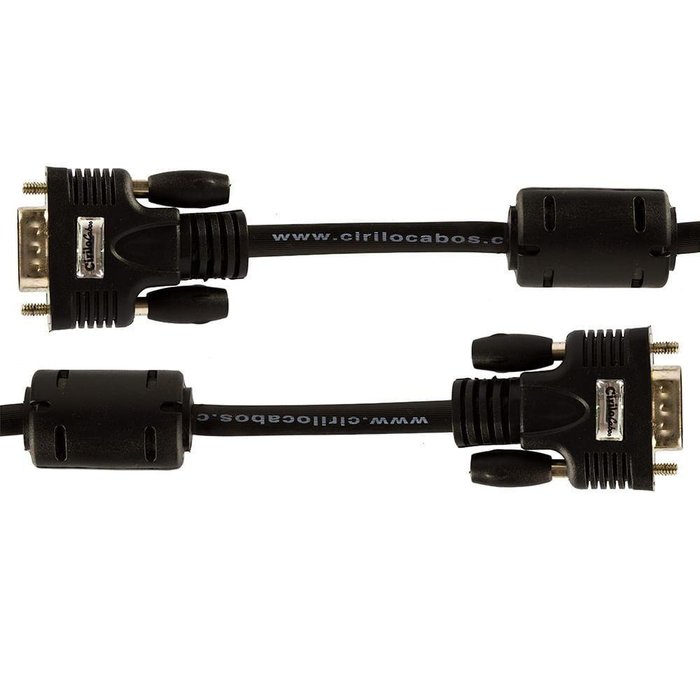 1 x Cabo VGA Blindado com Ferrite, 3 Metros - Cirilo Cabos Marca: Cirilo Cabos | Conector de saída: VGA RGGB | Tipo de cabo e adaptador: Cabo Adaptador Conversor | É OFC: Sim | Modelo: VGA RGGB | Comprimento do cabo: 3 | Gênero do conector de entrada: Macho | Codecs de áudio suportados: Não Aplica | Fonte do produto: Não | É gamer: Sim | Gênero do conector de saída: Fêmea | Resolução máxima suportada: Full HD | Tamanho AWG: 28 AWG | Dispositivos compatíveis: Computadores, Notebooks, Monitores, Projetores, TVs, DVRs,entre outros com VGA RGB . | Diâmetro do cabo: 28 AWG | Cor: Preto | Tipo de produto: Transmissão de Video | Formato de venda: Unidade | Quantidade de conectores de saída: 1 | Condição do item: Novo | Unidades por kit: 1 | Material de revestimento do conector: PVC Emborrachado Flexível, cobre Metal Niquelado. | Quantidade de conectores de entrada: 1 | É kit: Não | Conector de entrada: VGA RGB
