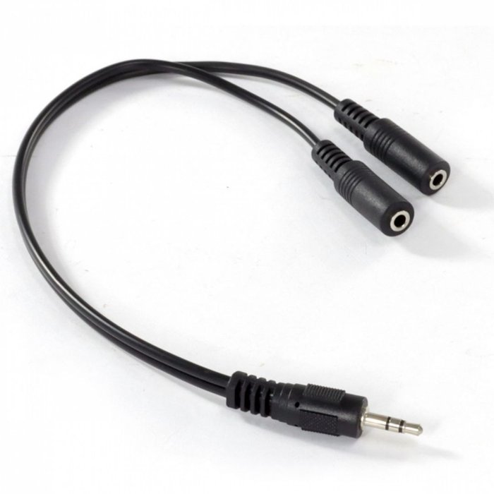 Cabo divisor de áudio do tipo P2. Com este cabo, é possível dividir um áudio P2 em outras duas saídas.