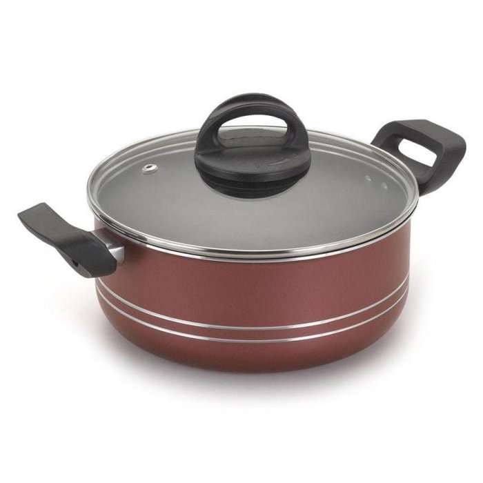Caçarola Antiaderente Vermelho Cereja Com Tampa de Vidro 24