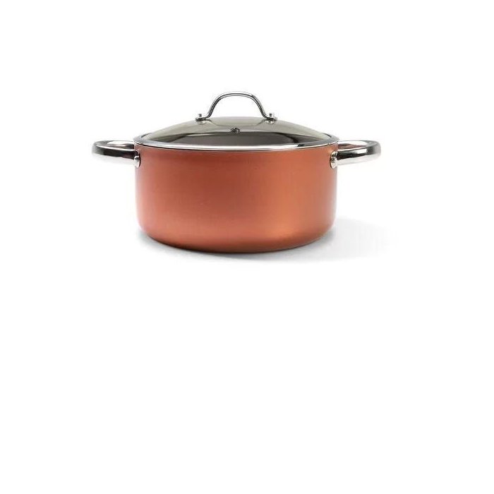 Características A Caçarola tornou-se um ícone em uma cozinha completa. É uma panela versátil e ideal para cozimentos do dia a dia. O charme fica por conta da cor cobre da peça, um toque iluminado na cozinha. O revestimento interno antiaderente exige menos óleo no preparo dos alimentos e é mais fácil de limpar. A estrutura em alumínio faz com que a panela esquente lentamente e mantenha o calor, garantindo um cozimento por igual. O cabo da peça é de aço inox e a tampa é de vidro com saída para o vapor. A caçarola tem 20x9,5cm e 2,07 litros de capacidade