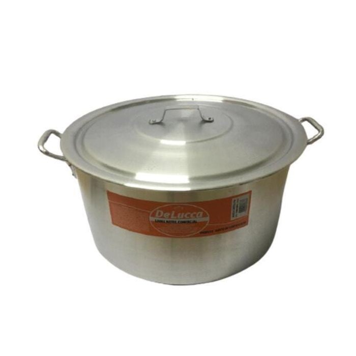 A Caçarola Linha Hotel Nº 40 De Lucca possui capacidade de 23,5 litros, uma tampa e duas alças nas laterais que facilitam o manuseio