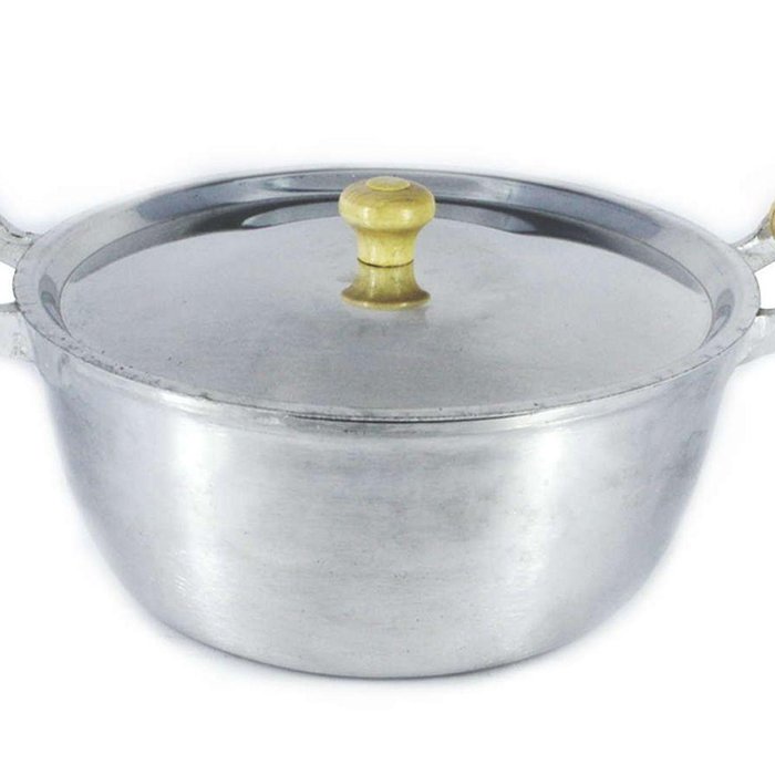 Caçarola Panela Alumínio Polido Alça Madeira Bojuda 24cm
