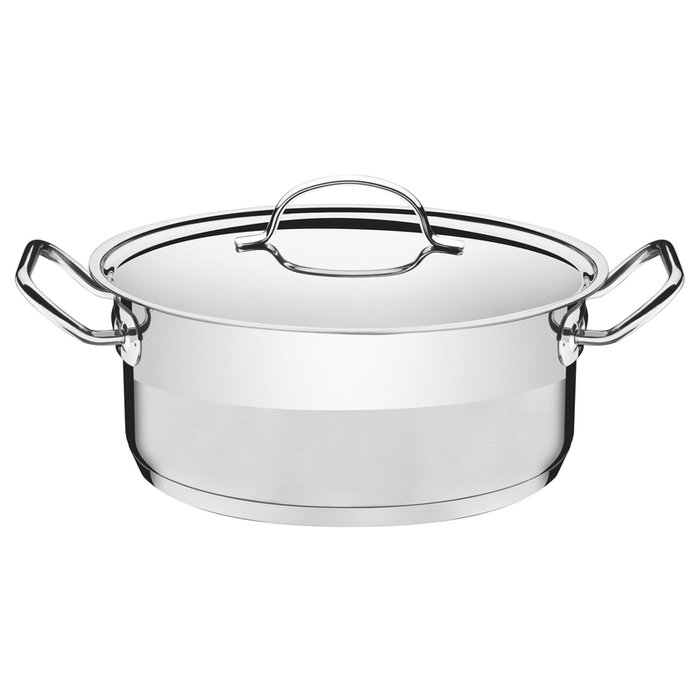 Caçarola Tramontina Professional Rasa em Aço Inox Fundo Triplo com Tampa Plana Detalhe Satinado 30 C