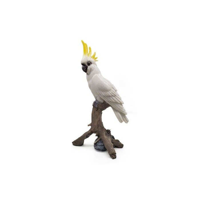 Cacatua Branca no Galho Branco e Amarelo Resina 38Cm